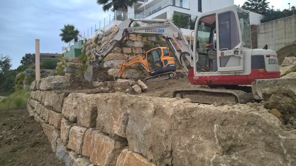 Excavalider S.L, destaca en la ejecucion de: Muros de Escolleras y Ecologicos, Excavaciones, Terraplenados, Obra civil, Demoliciones y Derribos, Trabajos forestales, Desbroce y mejoras de fincas, Actuaciones de emergencias, Transportes, Picados con martillos hidraulicos, Ejecucion de urbanizaciones, etc...